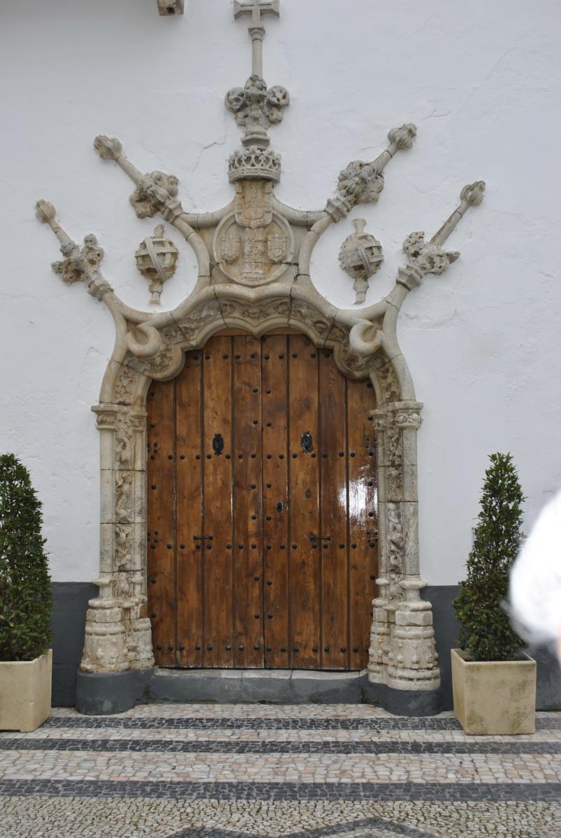 Avanzamos hasta llegar al Palacio Municipal, sede de la casa consistorial. Allí nos cuentan, que es mal llamado palacio de los duques de Cadaval, debido a que fueron alcaldes de Olivenza durante un largo periodo de tiempo. Presenta una portada de estilo gótico-manuelino muy original de principios del siglo XVI, se aprecian los motivos del mar y la tierra. Pero capta nuestra atención la coronación, el medallón con las armas portuguesas, el blasón de la villa y todo ello rematado con un florón con la cruz de Cristo.